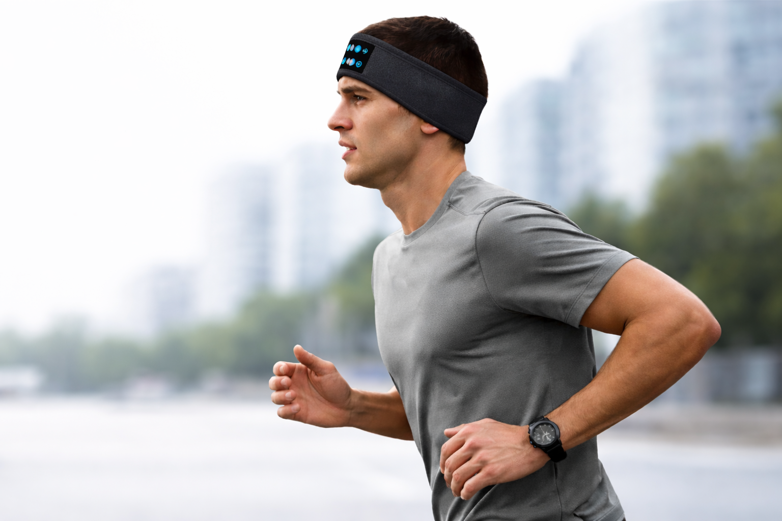 Diadema Bluetooth deportiva diseñada para correr, fútbol y entrenamientos intensos.